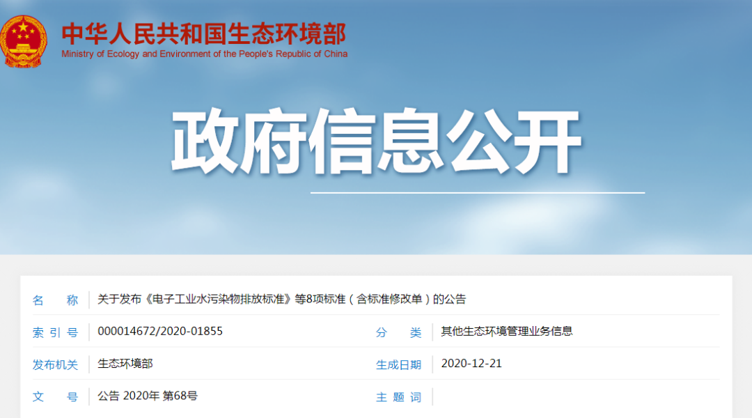 關(guān)于發(fā)布《電子工業(yè)水污染物排放標(biāo)準(zhǔn)》等8項(xiàng)標(biāo)準(zhǔn)(含標(biāo)準(zhǔn)修改單)的公告