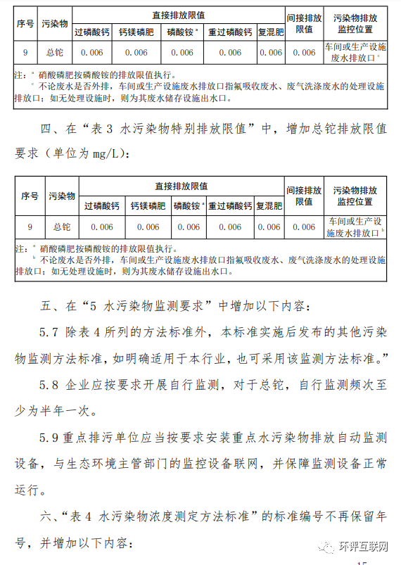 4.《磷肥工業(yè)水污染物排放標(biāo)準(zhǔn)》(GB 15580-2011)修改單