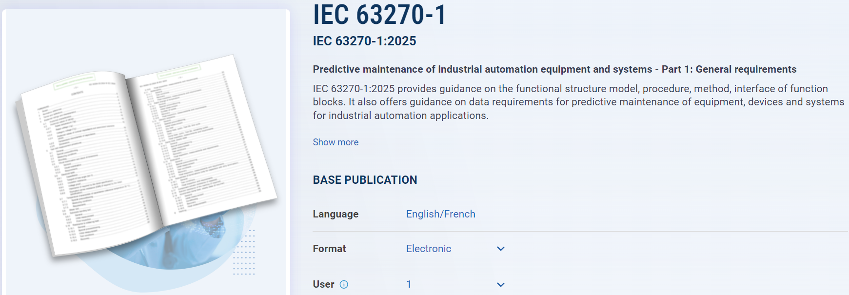 2025417日,我國牽頭制定的國際標準IEC 63270-1:2025 Predictive maintenance of industrial automation equipment and systems -Part 1: General requirements》正式發布。這是IEC首項預測性維護國際標準,標志著我國在預測性維護技術研究與國際標準化領域取得突破性進展,為人工智能與制造業深度融合注入新動能。