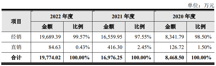 此外,在銷售模式上,該公司還是以經銷為主,在2022年,其直銷占比僅為0.43%,大量的營收由經銷貢獻。據了解,其2022年主要客戶有上海熠磊、ProGate、華辰信科、神州數碼、深圳和順泰等,銷售模式均為經銷。
