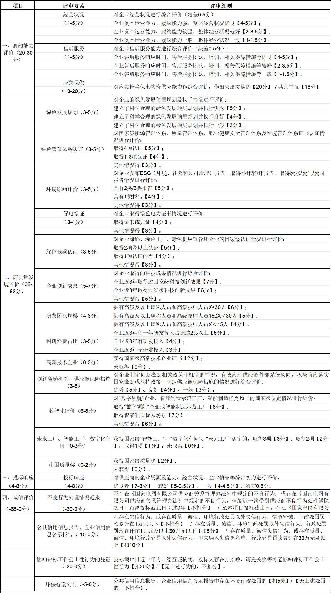 商務評分更加看重企業的高質量發展和誠信評價,光“綠色”相關的評審項就達到24分;誠信評價改為扣分制,新增了“影響評標工作公正性行為的憑證”、“環保行政處罰”兩項評審要素,最多分別可扣分20分和5分,對不良行為中的行賄行為加大了懲罰力度,扣分直接加倍(這一條我覺得有點針對的意思了)。