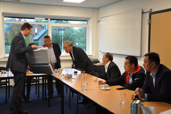 下午,代表團拜訪了著名的Bronkhorst,該公司的氣體/液體流量計和控制器,在流量測量行業享有盛譽。通過多年的持續努力,該公司已經成為微流量流體技術方案領域當之無愧的行業專家。該公司的產品,通過與顧客、供應商合作研發,采用獨特的“模塊堆積”方式,最終產品最符合客戶需求,并足以及時投入生產應用。Bronkhorst已經在上海和香港設立了子公司,負責境內貿易和國際貿易合作。 企業家們對該公司的產品興趣濃厚,有部分企業家有意向將其集成到自己的行業解決方案中。丹東通博和杭州盤古在交流會上介紹了各自情況,并針對流量儀表的相關技術和市場與Bronk horst公司銷售經理Pimvan der Hall先生進行了深入交流。