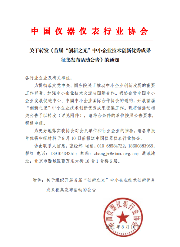 附件下載:關(guān)于轉(zhuǎn)發(fā)《首屆“創(chuàng)新之光”中小企業(yè)技術(shù)創(chuàng)新優(yōu)秀成果征集發(fā)布活動公告》的通知