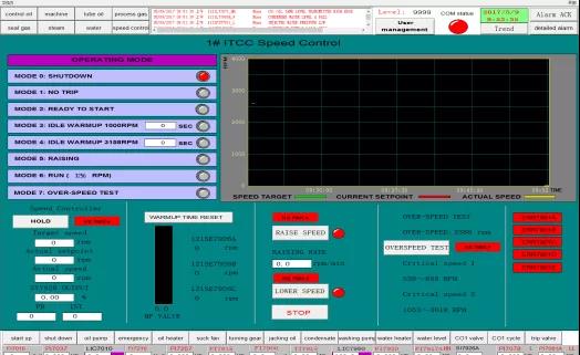 汽輪機作為原動機,汽輪機啟動階段的轉速控制,根據(jù)汽輪機主機廠提供的升速曲線,進行升速控制。在機組暖機升速、過臨界轉速、進入工作轉速和降速停機過程中,要投入壓縮機調速控制。在機組控制系統(tǒng)中預先存儲壓縮機的升速曲線,根據(jù)預設的轉速,將轉速目標值轉換為轉速PID的給定值,保證機組穩(wěn)定工作在額定轉速。
