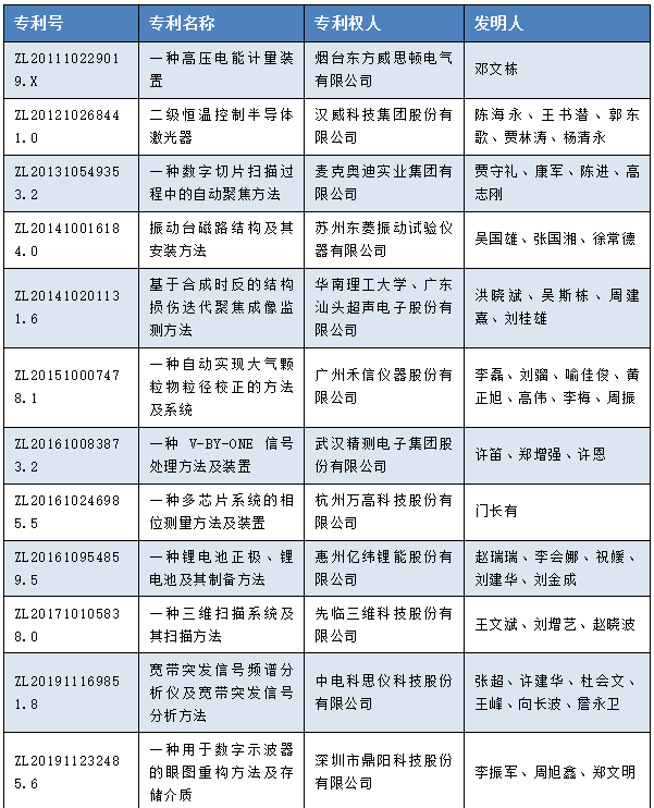 根據《中國專利獎評獎辦法》規定,經國務院有關部門知識產權工作管理機構、地方知識產權局、有關全國性行業協會,以及中國科學院院士和中國工程院院士等推薦,中國專利獎評審委員會評審,社會公示,國家知識產權局和世界知識產權組織決定授予“HIV感染的肽衍生物融合抑制劑”等29項發明、實用新型專利中國專利金獎,“火星車”等10項外觀設計專利中國外觀設計金獎;國家知識產權局決定授予“填埋氣體和滲濾液傳輸過程的監測試驗系統”等60項發明、實用新型專利中國專利銀獎,“餐飲機器人(普渡)”等15項外觀設計專利中國外觀設計銀獎;國家知識產權局決定授予“藥品的自動分裝與計量裝置”等777項發明、實用新型專利中國專利優秀獎,“便攜式彩色超聲診斷儀”等45項外觀設計專利中國外觀設計優秀獎;國家知識產權局決定授予廣東省知識產權局等7家單位中國專利獎最佳組織獎,中國電子儀器行業協會等20家單位中國專利獎優秀組織獎,高文等20位院士中國專利獎最佳推薦獎。
