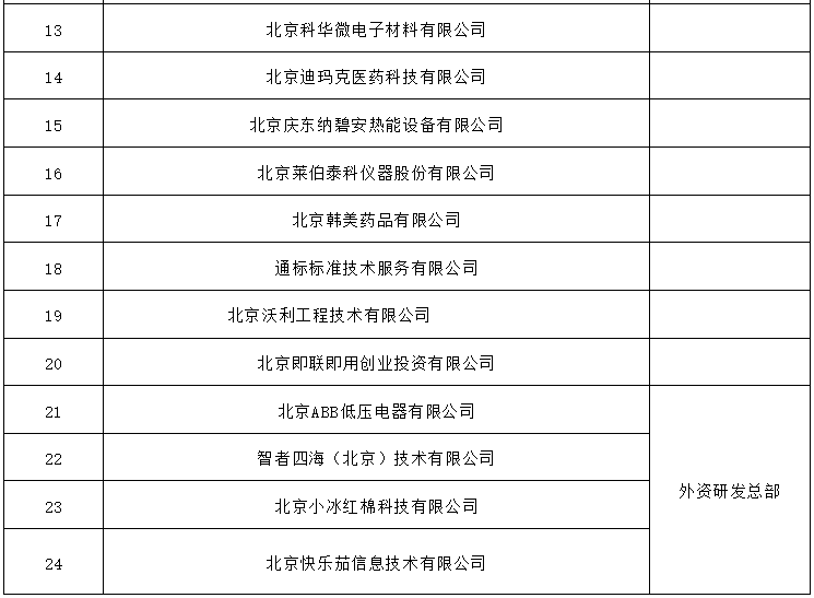 北京:第三批北京市外資研發中心認定名單