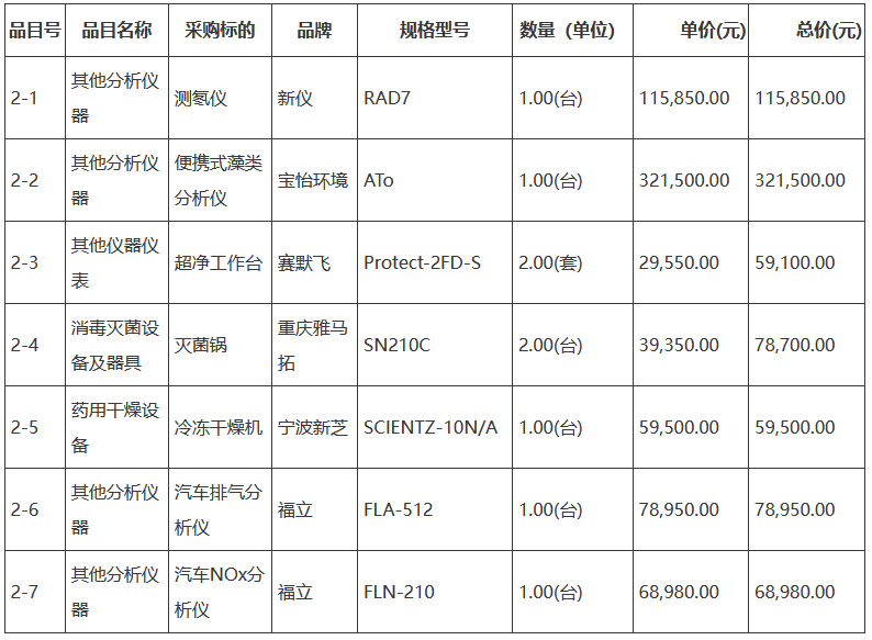 2023年環境監測及分析儀器購置項目(第二批)中標
