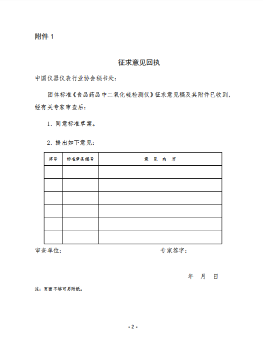 附件:1.征求意見回執(zhí)—— 食品藥品中二氧化硫檢測儀