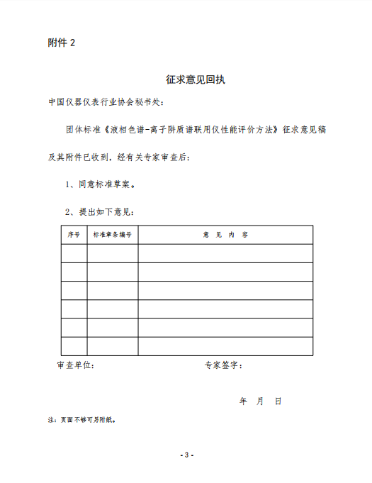 2.征求意見回執(zhí)—— 液相色譜-離子阱質(zhì)譜聯(lián)用儀性能評價方法