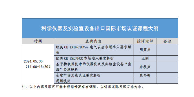 附件:科學儀器及實驗室設備出口國際市場認證解析課程介紹