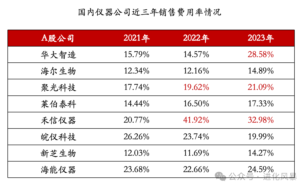 在研發費用高啟的同時,日益增加的市場營銷費用成為壓垮公司利潤的最后一根稻草。公司上市后搞大躍進,把大量的資金投入到各種研發管線中去,企圖構建一個大而全的儀器帝國,往往資本市場歡迎什么就做什么,同行什么賣得好就做什么,招來的員工會做什么就做什么,而忽略了企業定位、戰略角度的考量以及后端資源的匹配性。