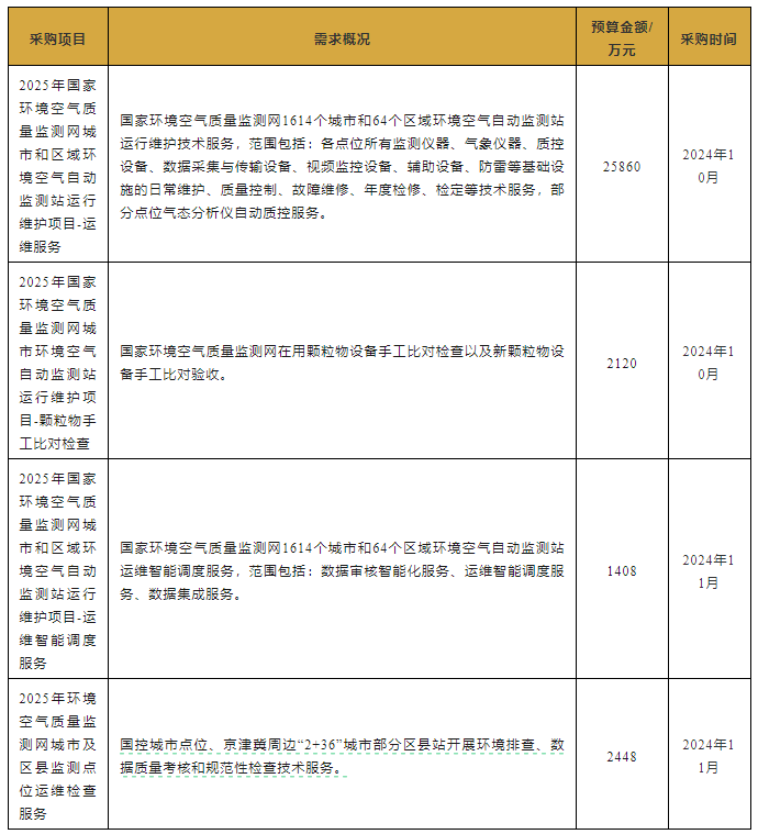 中國環(huán)境監(jiān)測總站2024年10~11月儀器設(shè)備采購意向匯總表