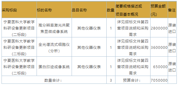 項目名稱: 寧夏醫科大學教學科研設備更新項目(二標段)