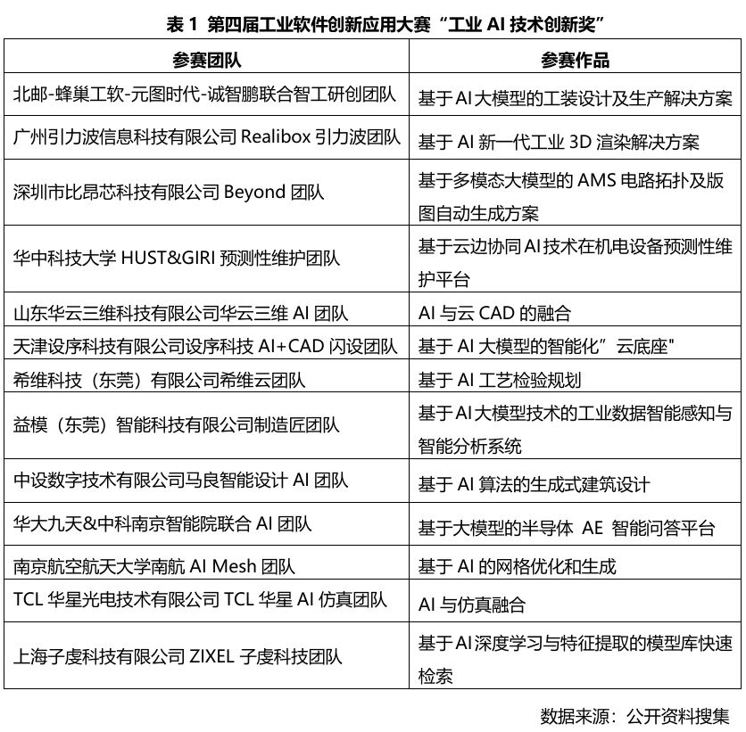 第四屆工業(yè)軟件創(chuàng)新應(yīng)用大賽以“AI+工業(yè)軟件”為主題,涌現(xiàn)出一大批優(yōu)秀的AI創(chuàng)新與應(yīng)用項(xiàng)目,有98家隊(duì)伍參與比賽,有41支隊(duì)伍入圍決賽,13支隊(duì)伍獲得技術(shù)創(chuàng)新獎,13支隊(duì)伍獲得應(yīng)用場景創(chuàng)新獎。