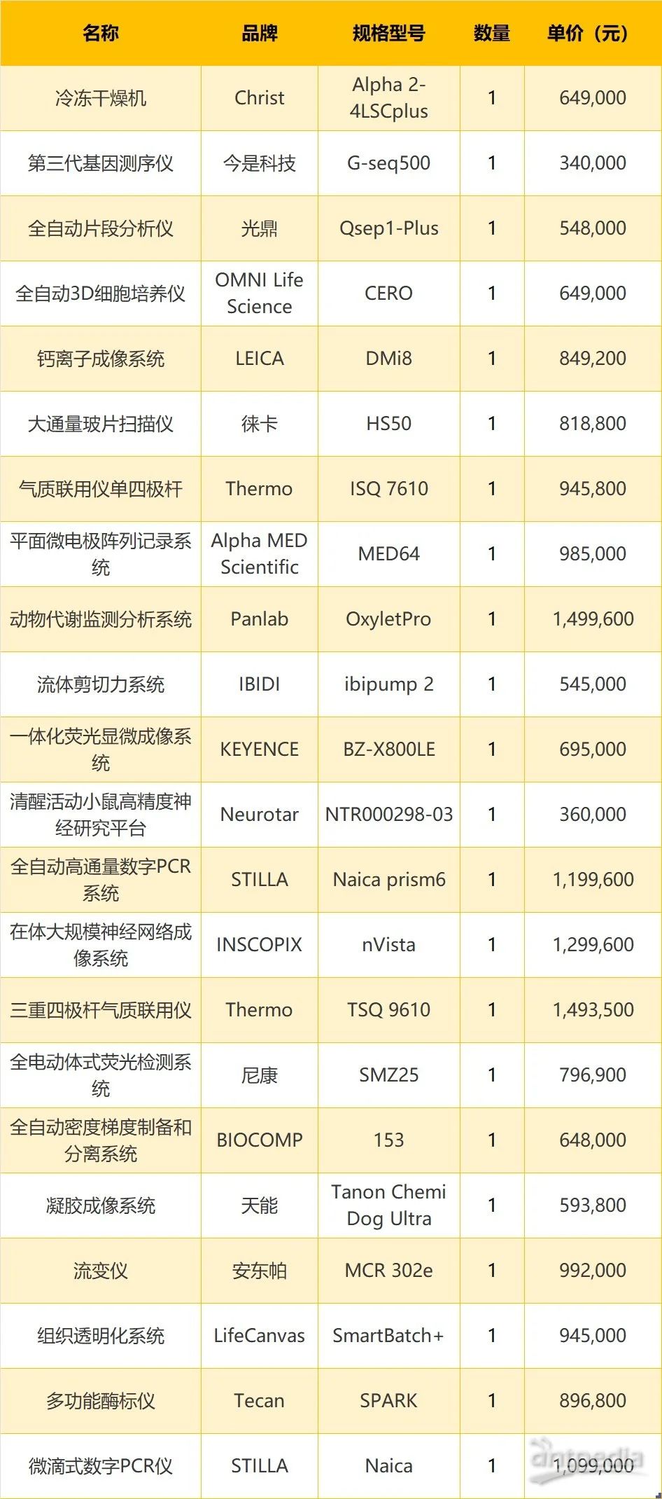 近日,中國醫科大學就“教育部重大慢病發病機制及綜合診療醫藥基礎研究創新中心設備更新項目”公布一批中標結果公告,涵蓋基因測序儀、數字PCR系統、氣質聯用儀等22套設備中標,中標金額達1884.86萬元。