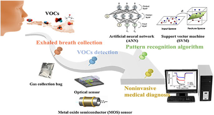 機器學習與模式識別技術賦予傳感器解析復雜氣體 “指紋” 的能力。浙江大學鄔建敏團隊基于石墨烯基嗅覺傳感器陣列,通過機器學習分析信號,結合 RFLassoSVM 加權融合模型,提升了呼吸道感染類型檢測的魯棒性與準確性;瑞典林雪平大學與國家法醫學委員會團隊采用 32 MOS 氣體傳感器陣列,結合自適應機器學習算法,實現了法醫鑒定中 VOC 的非侵入、實時分析。
