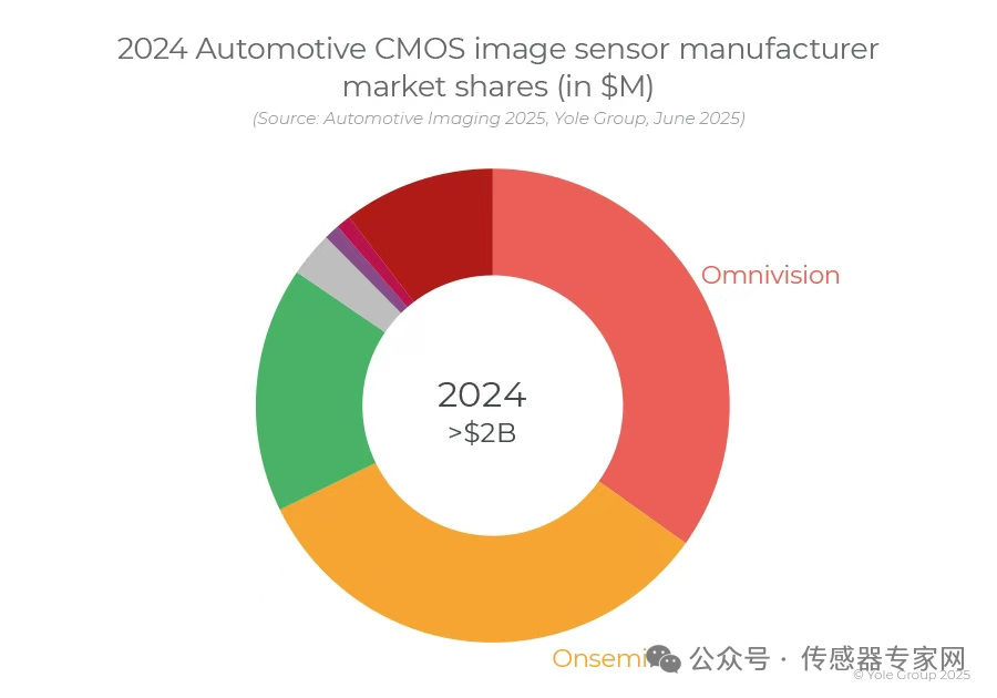 值得一提的是,在汽車CMOS圖像傳感器領(lǐng)域,豪威集團(tuán)在2024年成功超過(guò)安森美,成為全球第一,這也是安森美多年來(lái)首次從汽車CIS冠軍寶座跌落。