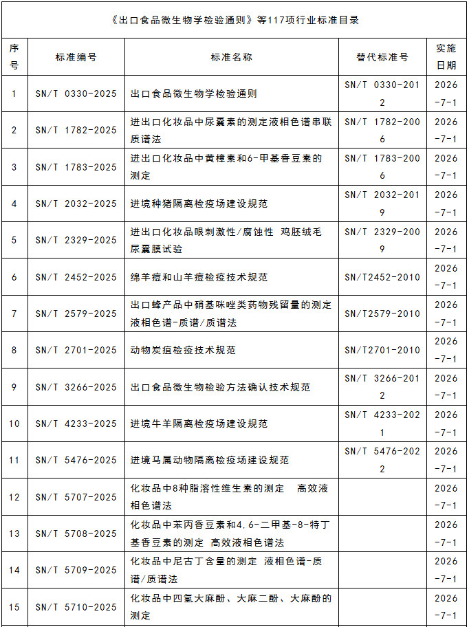 12月11日,海關(guān)總署發(fā)布《出口食品微生物學(xué)檢驗(yàn)通則》等117項(xiàng)行業(yè)標(biāo)準(zhǔn)。這些新發(fā)布的行業(yè)標(biāo)準(zhǔn)旨在進(jìn)一步規(guī)范出口食品的檢驗(yàn)流程,確保出口食品的質(zhì)量與安全,提升我國(guó)食品在國(guó)際市場(chǎng)上的競(jìng)爭(zhēng)力。