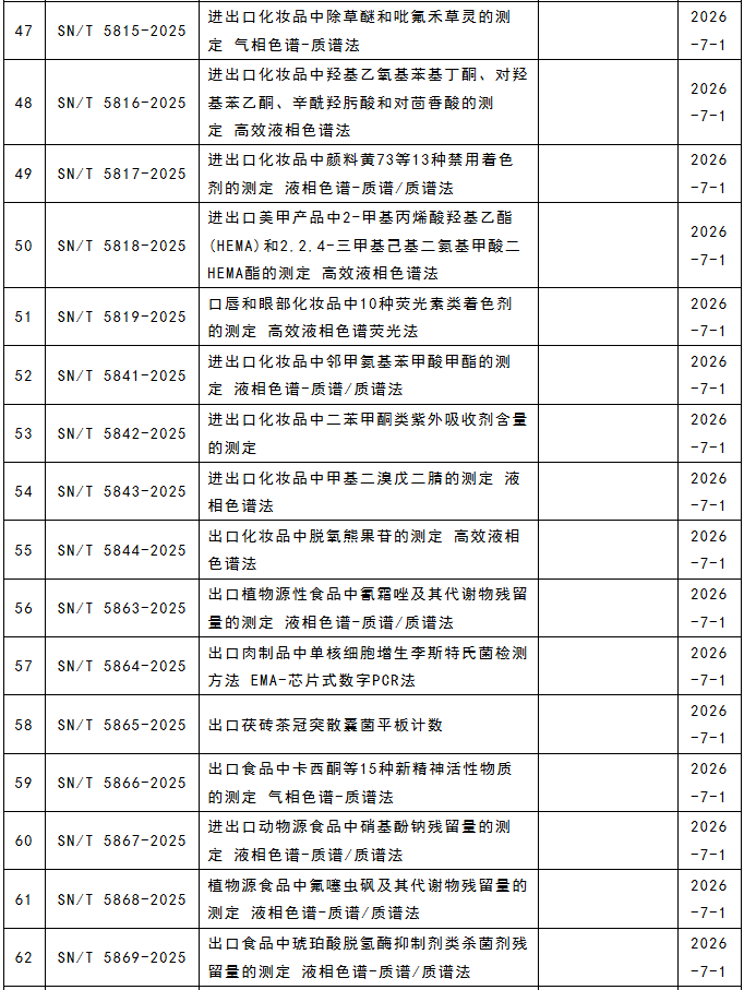 這117項(xiàng)行業(yè)標(biāo)準(zhǔn)涵蓋食品、化妝品、藥材等領(lǐng)域,涉及液相色譜串聯(lián)質(zhì)譜法、液相色譜-質(zhì)譜/質(zhì)譜法、高效液相色譜法、電感耦合等離子體質(zhì)譜法、近紅外光譜法、實(shí)時(shí)熒光PCR方法等檢測(cè)方法。