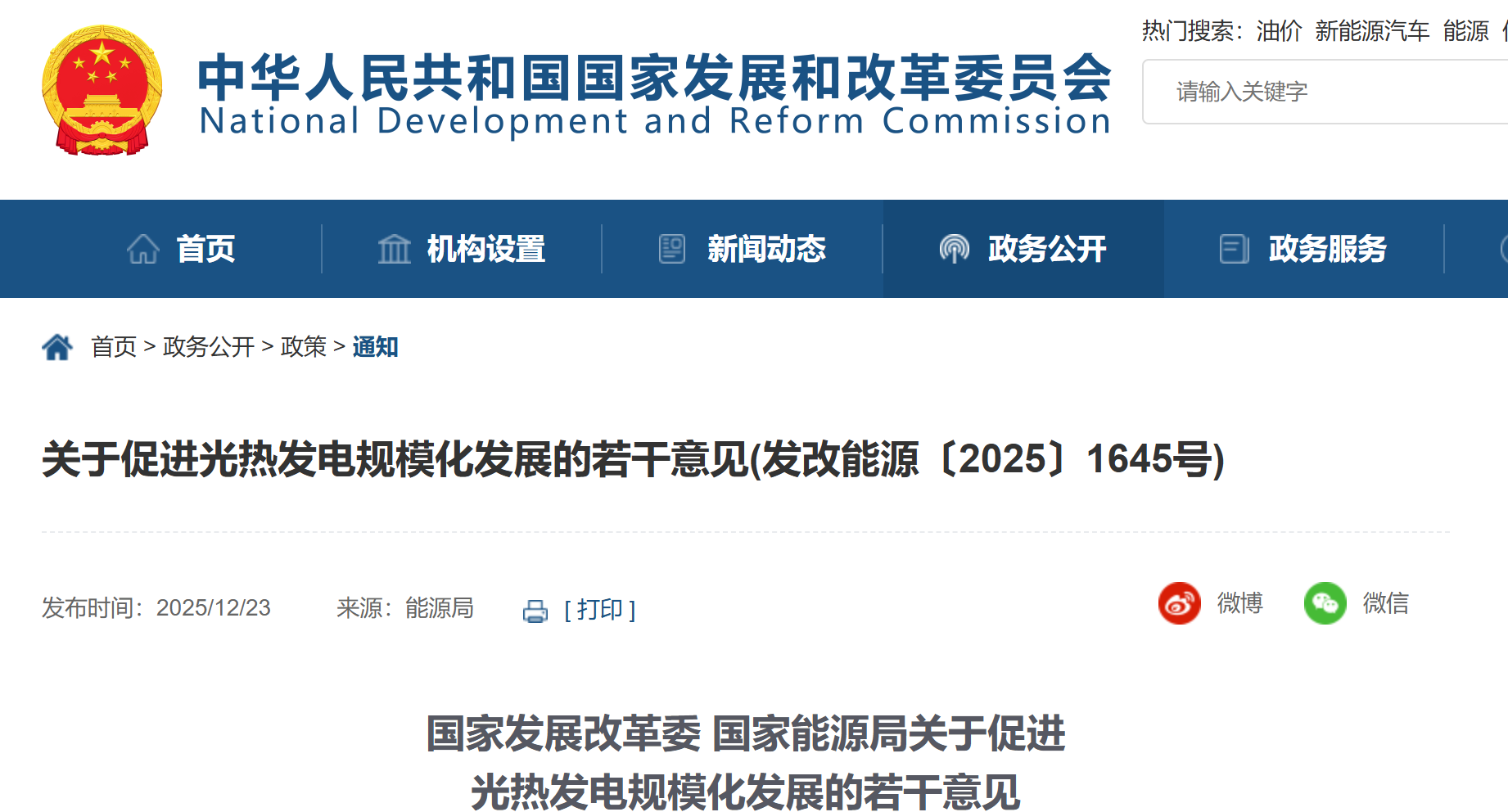 (十一)加快關鍵技術突破,促進光熱產業降本增效。加快關鍵技術、材料與裝備研發,支持光熱發電頭部企業與科研機構組建研發聯合體,聚焦高效聚光吸熱換熱、規?;L時高溫儲熱、能量高效轉換、高靈活性光熱機組、智慧化控制等領域,開發新型大開口槽式集熱器、高精度定日鏡、低成本長壽命儲熱材料、新型透平等國產化關鍵裝備,全面提升我國光熱核心技術自主化及關鍵裝備國產化水平。強化光熱領域應用基礎研究,突破高參數“光-熱-電”轉換及高效熱能存儲等科學理論,鼓勵顛覆性技術創新。