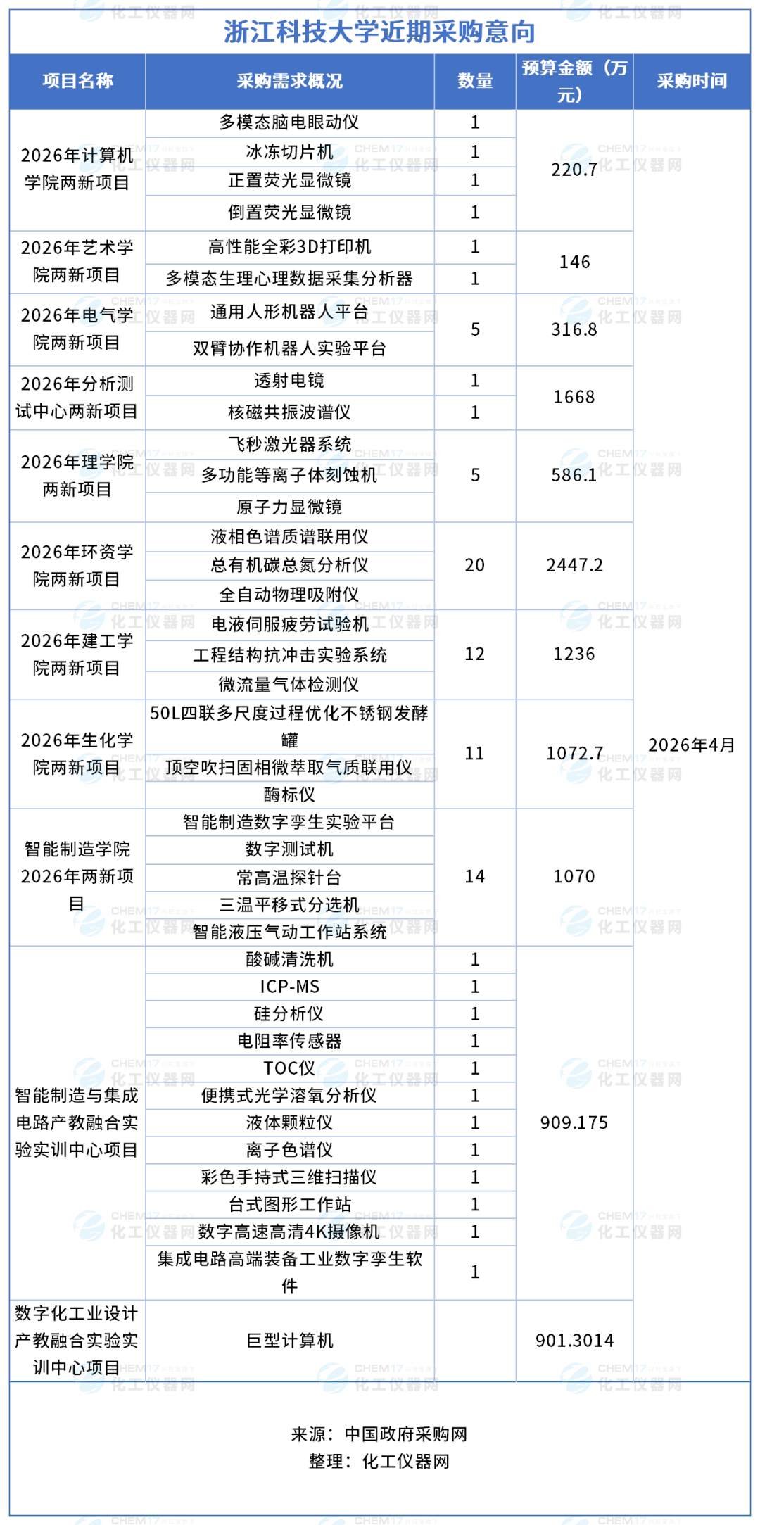 預算超1億!浙江科技大學發布4月儀器采購意向