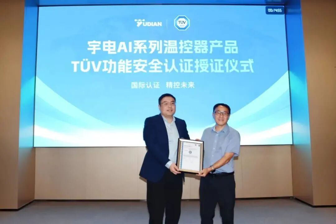4月15日,宇電溫控科技AI系列溫控器TÜV南德功能安全認(rèn)證授證儀式,在宇電廈門(mén)翔安產(chǎn)業(yè)園圓滿(mǎn)舉辦,TÜV南德意志集團(tuán)(以下簡(jiǎn)稱(chēng)“TÜV南德”)正式為宇電AI-85X系列限溫溫控器頒發(fā)功能安全證書(shū),宇電成為國(guó)內(nèi)首個(gè)通過(guò)該認(rèn)證的國(guó)產(chǎn)溫控器品牌。